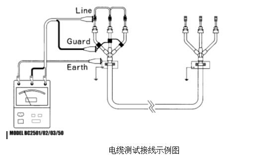 (EARTH)(3)端,另一頭接于被試設備的外殼或地上。以電纜測試為例接法