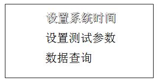 2.2.1、開機LOGO,按【菜單】鍵進入主菜單。主菜單有三個選項:“設置系統(tǒng)時間”“設置測試參數”和“數據管理”。