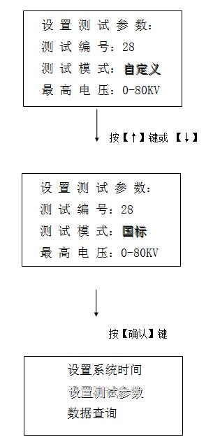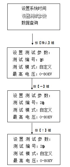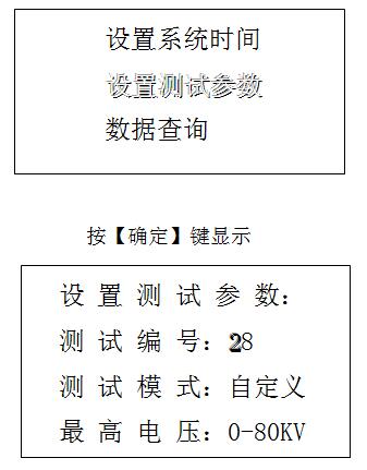2.2.2、按【↑】鍵和【↓】鍵移動陰影光標到“設置測試參數”,再按【確認】鍵進入設置測試參數界面。