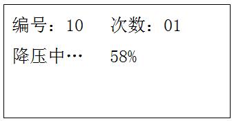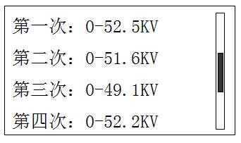 4.1.2、油樣擊穿或到電壓升到最高設定值,儀器立即切斷主回路電源,LCD關閉顯示。大約3秒鐘后,LCD顯示降壓界面;
