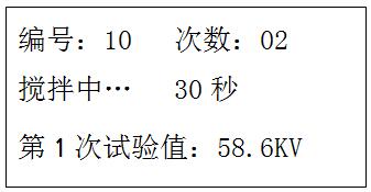 4.1.4、等待時間300秒倒計時完畢,LCD顯示攪拌界面,儀器自動對油樣進行攪拌;
