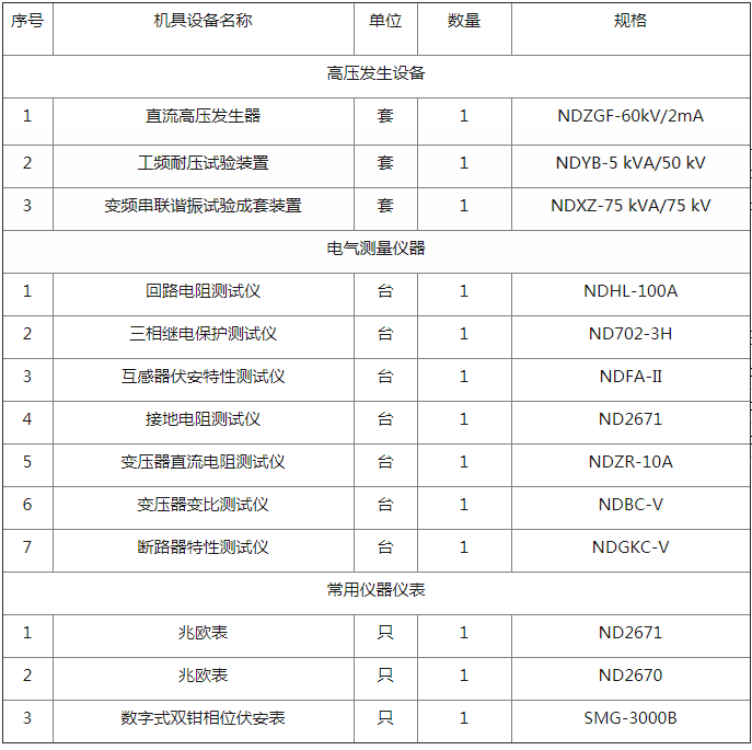 承試類五級電力試驗設(shè)備選型